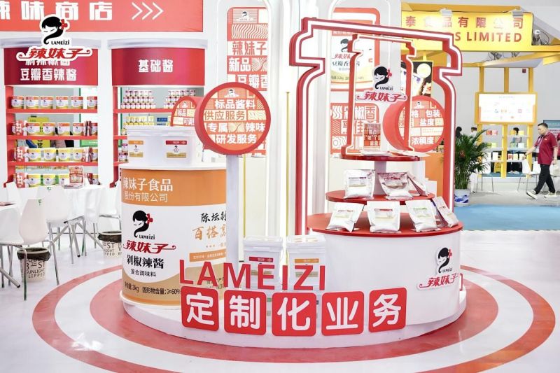 值得一提的是,3月28日-30日,辣妹子以“辣味解決方案服務商”的主題參加了于武漢進行的第十三屆良之隆食材展會,本次展會盛況非凡,匯集了美食行業大咖及餐飲終端采購等,辣妹子定制化推出的4款基礎辣醬工業桶系列,鎖鮮椒系列,以及13種特色烹飪醬悉數展陳亮相,引得游覽者紛紛駐足品嘗。